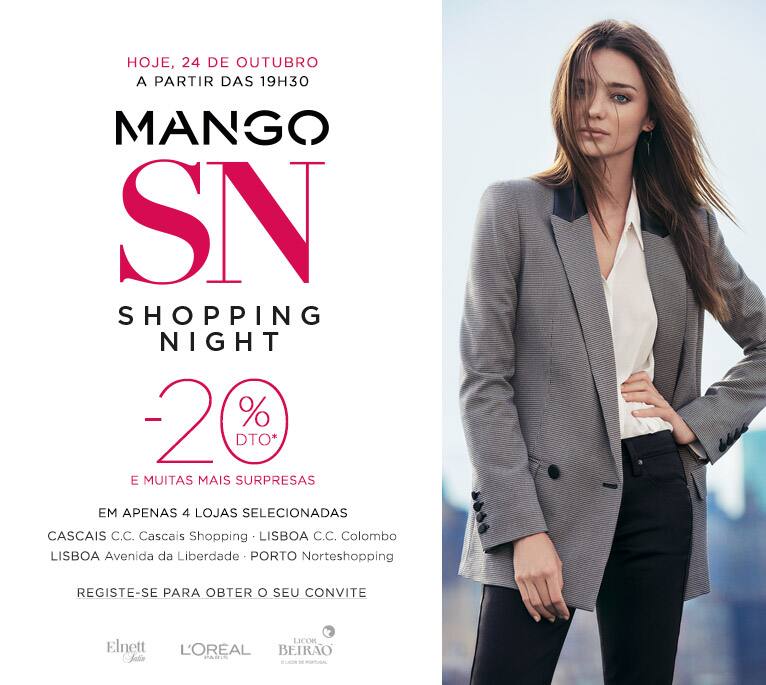 Hoje o dia termina na Mango, na shopping night. Esperam-se muitas surpresas e muita diversão. Para além de termos desconto de 20% em compras, ainda podemos contar com estilistas da L'Oréal Paris para nos maquilharem e pentearem. Eu vou estar no Colombo a partir das 19h30, e vocês?
